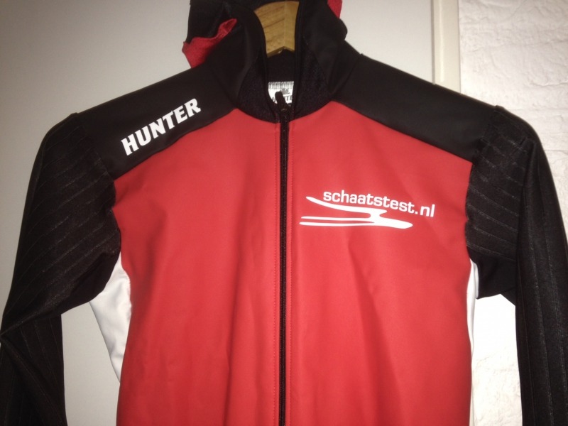 Het online zelf ontworpen pak is uiteraard geheel naar eigen smaak gemaakt. Daar valt weinig op af te dingen. Je bepaalt tenslotte zelf wat je mooi vindt. De eerste indruk van het pak is prima. Kwalitatief mooi gemaakt, stevige rits en mooie materialen. Daar waar ik bij elk ander schaatspak erg veel moeite had om het strakke pak aan te trekken schiet je vrij gemakkelijk in het Hunter schaatspak. De soepele stof van armen en benen is flink rekbaar waardoor je er gemakkelijk doorheen glijdt. Het rubber zit strak waar het strak moet zitten en biedt compressie. Maar het pak knelt nergens. Daar waar ik bij al mijn eerdere schaatspakken knelling onder de oksels voelde zit het Hunter Schaatspak comfortabel.