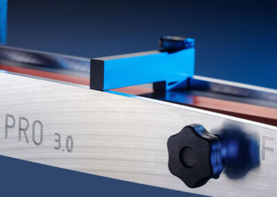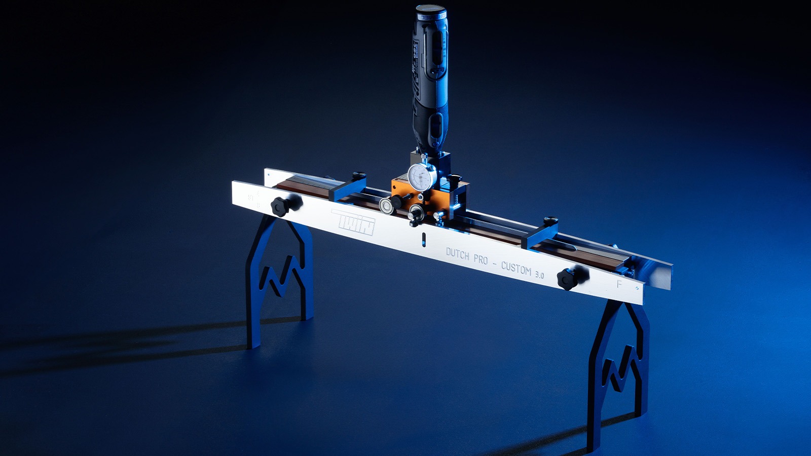 De shorttrack-versie, de TWIN-ST slijptafel, bevat een ronding, zodat ijzers perfect en spanningsloos in te klemmen zijn.